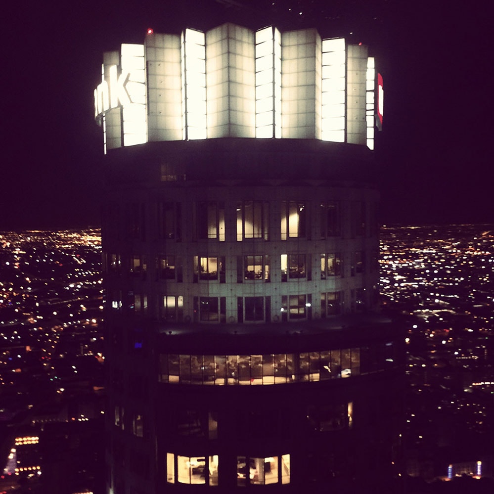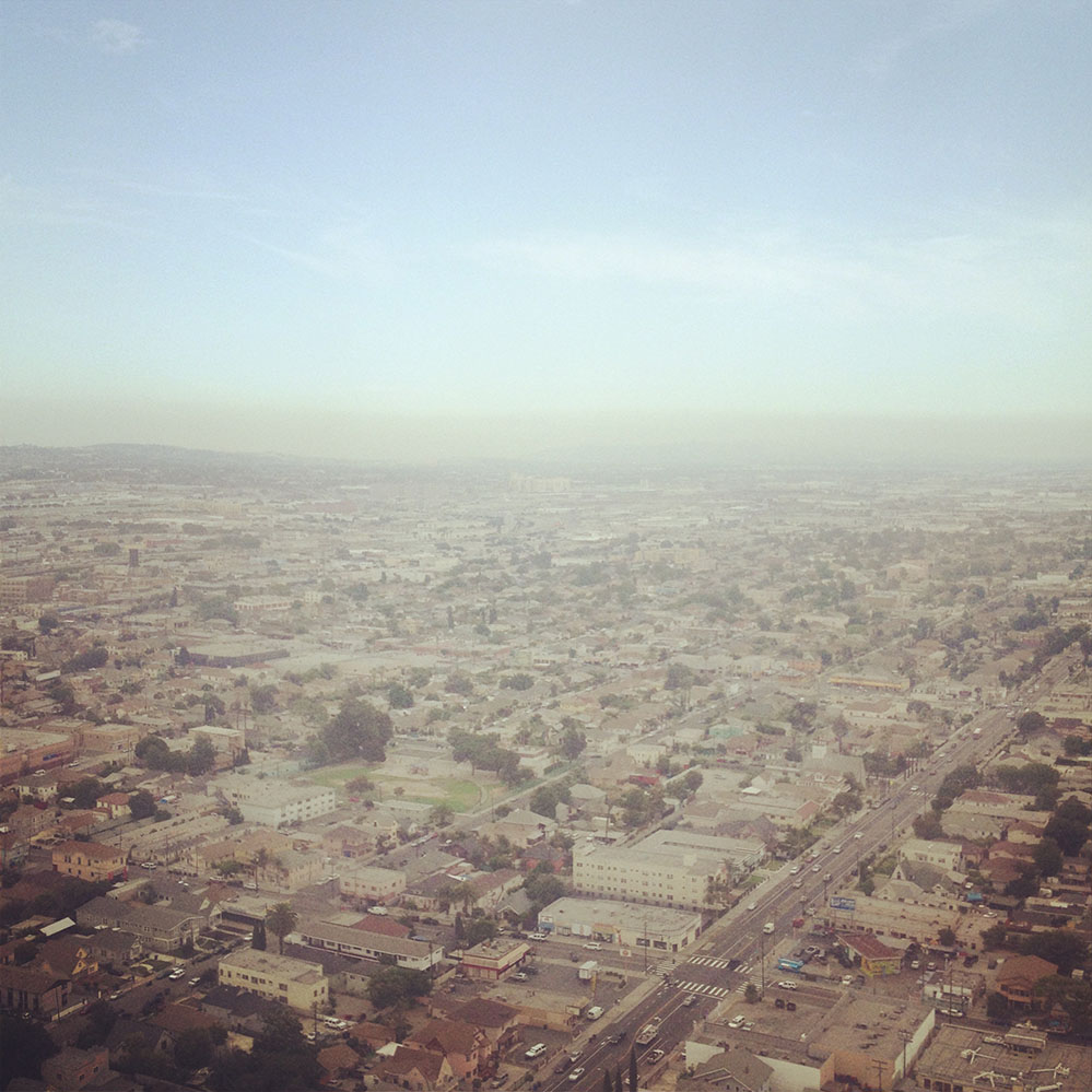 [Image: Sunset approaching downtown L.A.; cropped Instagram by BLDGBLOG].