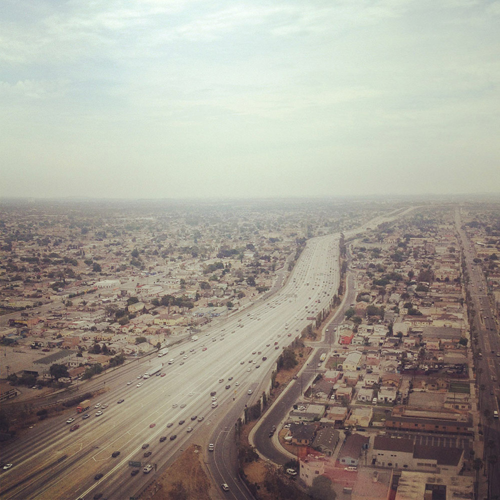 [Images: Moving maps and binoculars over L.A.; Instagrams by BLDGBLOG].The book excerpt in the Times also briefly picks up on some themes elaborated in an article I wrote for Cabinet Magazine a few years ago, discussing how the infrastructure of Los Angeles itself inadvertently permits certain classes of criminal activity.